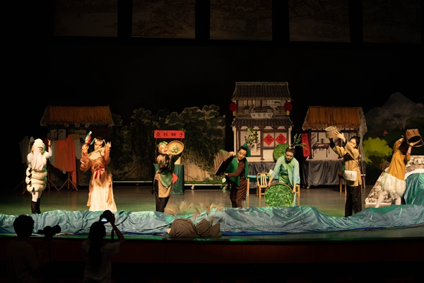 《大运河上的新鲜事》将打击乐融入到剧情当中,配合精彩绝伦的歌舞表演、美轮美奂的灯光转换和演员们的生动演绎,给现场观众带来一场视听盛宴。该剧主要讲述了在京杭大运河湖州段含山脚下勤劳的村民们——含山爷爷、蚕小宝、丝绸姐姐、桑树哥哥等与运河里的垃圾怪抗争,并通过智慧和团结共同守卫绿色家园的故事。“桑基鱼塘”“湖笔文化”“‘两山’理念”经过儿童剧中活灵活现的精心演绎,更加引起观众们的共鸣。这是湖州文化和儿童剧表现形式的一次深度融合和跨界探索,兼具趣味性和教育性,充分激发了孩子们保护环境、团结一致的意识和决心。