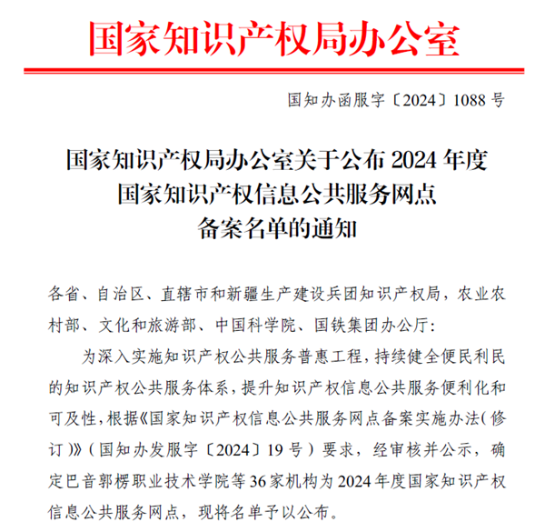 近日,国家知识产权局公布了2024年度国家知识产权信息公共服务网点名单,图书馆牵头申报的久久精品一区二区知识产权信息公共服务网点成功入选,是浙江省本年度唯一获批的国家级知识产权信息公共服务网点。